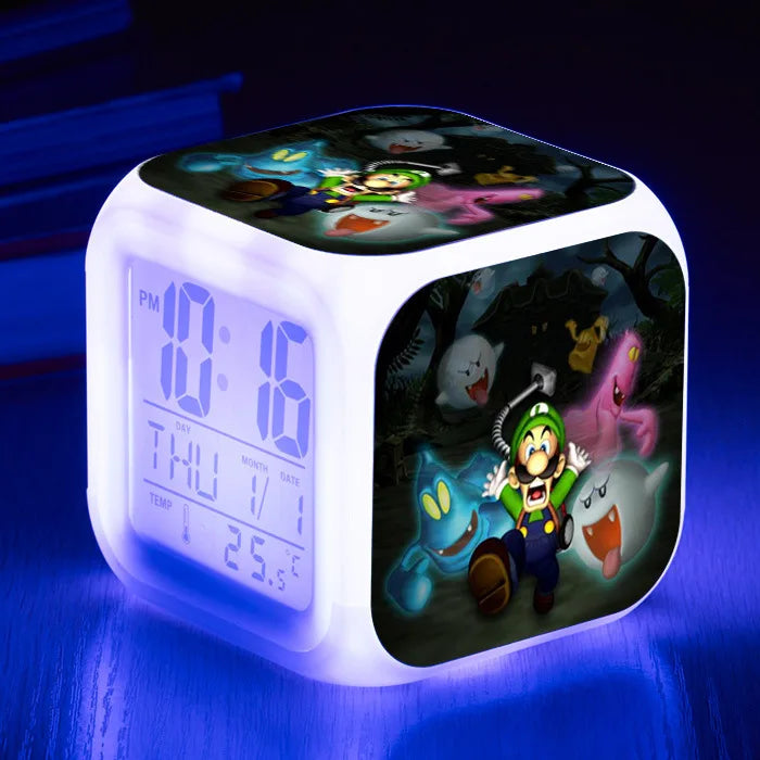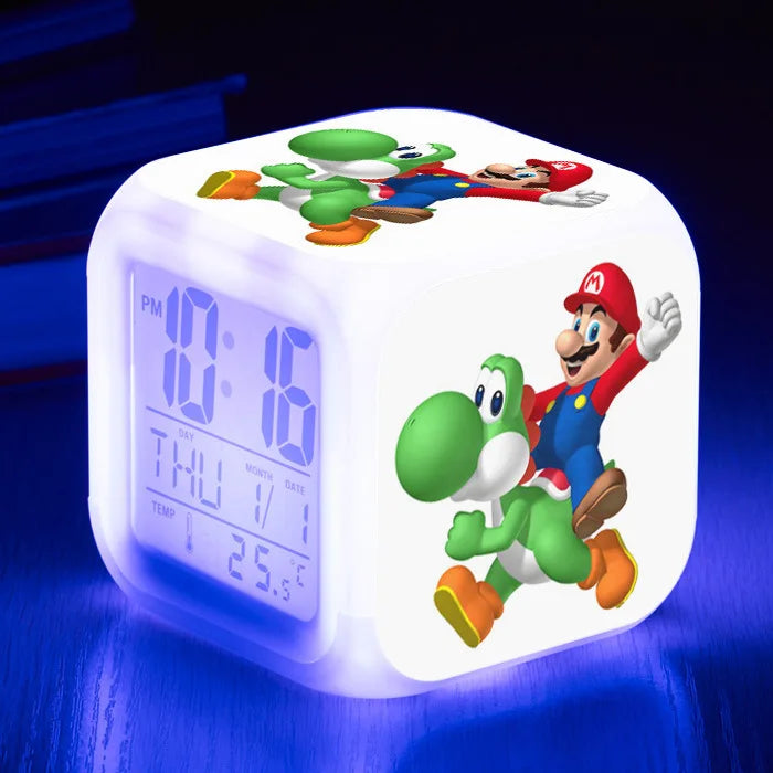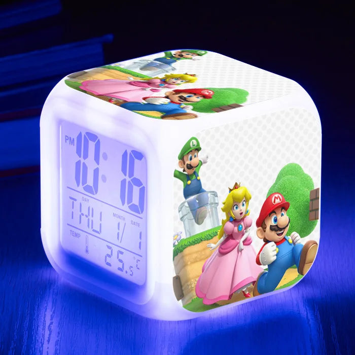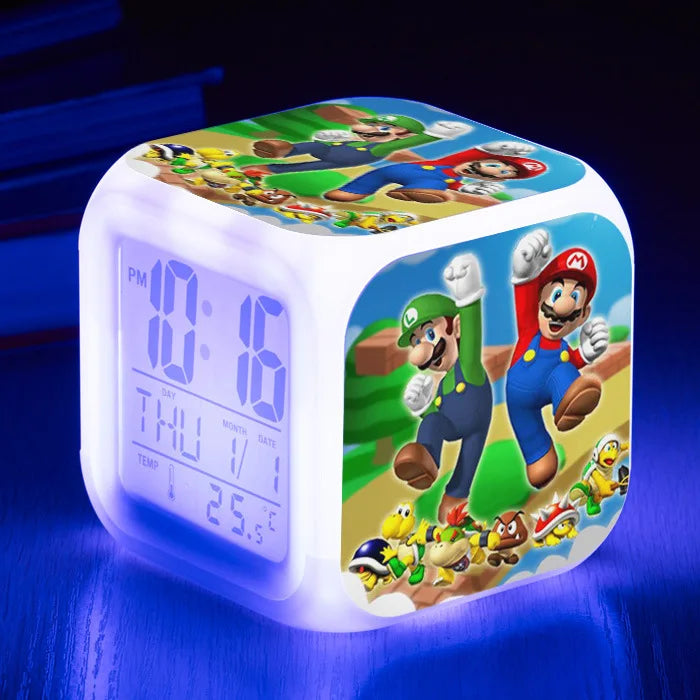 Cute Super Mario Luigi LED Color Changing Alarm Clock Electronic Clock Luminous Digital Glowing Decoration Fashion Toy Kids Gift