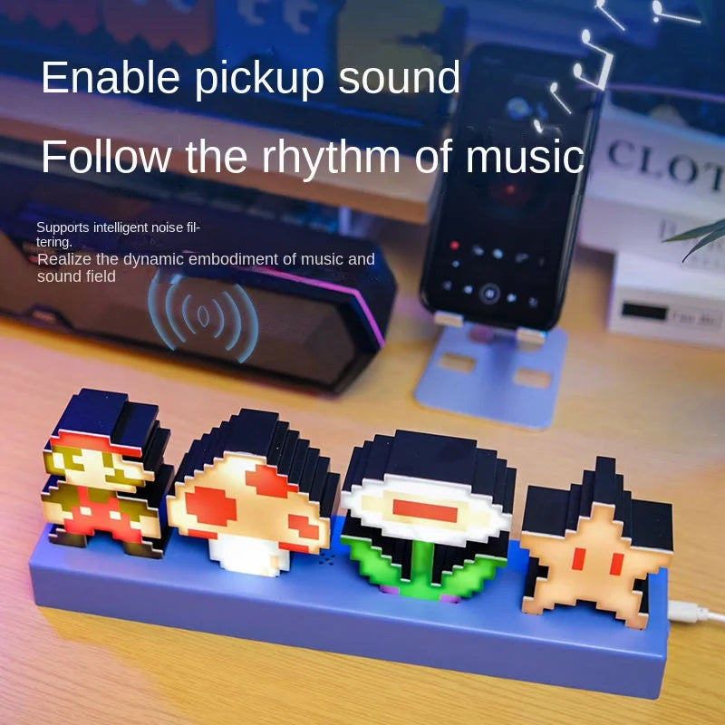 Super Mario Smart Sound USB Control LED Light Music Rhythm Ambient Pickup Night Lamp Lighting for Compute Gaming Desktop Decor